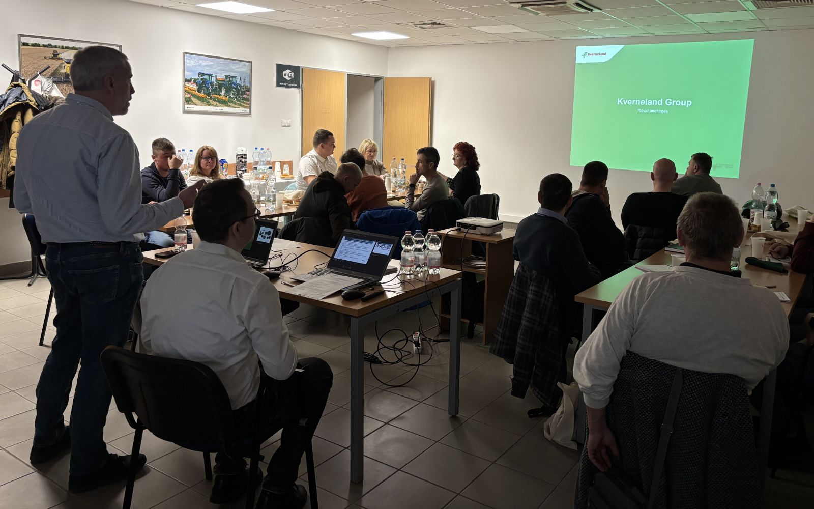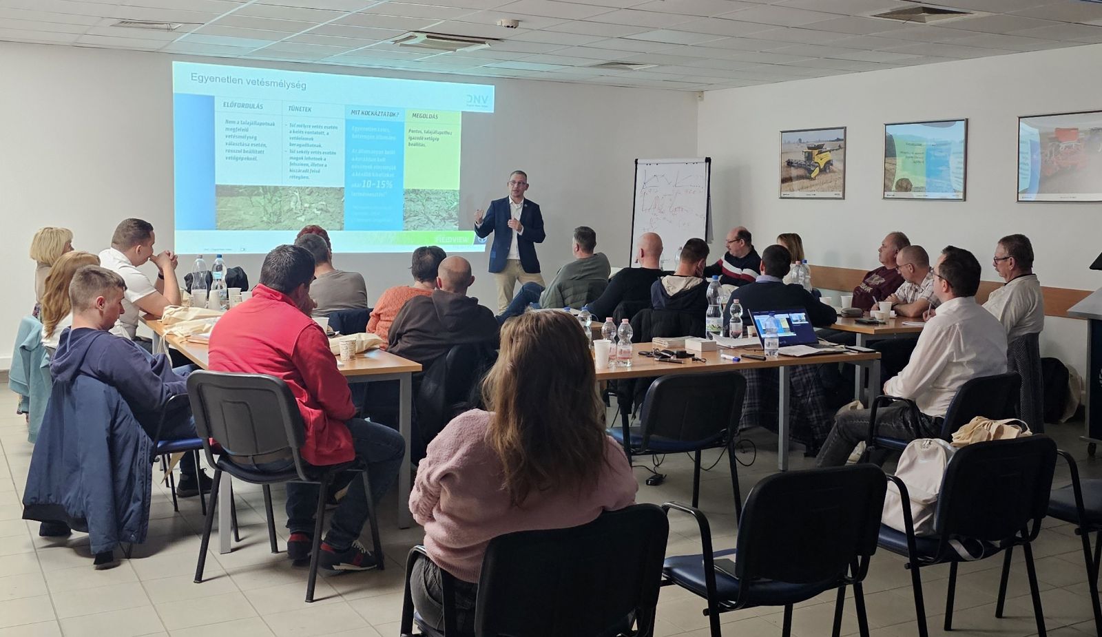 A második napon a gyakorlati oktatásé volt a főszerep. Illés Zoltán, az Agrotec Magyarország Kft. ügyvezetője köszöntötte a résztvevőket a cég komáromi központjában, majd kezdetét vették a gyakorlati tapasztalatokra és a munkavégzési folyamatokra fókuszáló előadások, a nap végén pedig a precíziós munkagépek is megtekintésre kerültek.